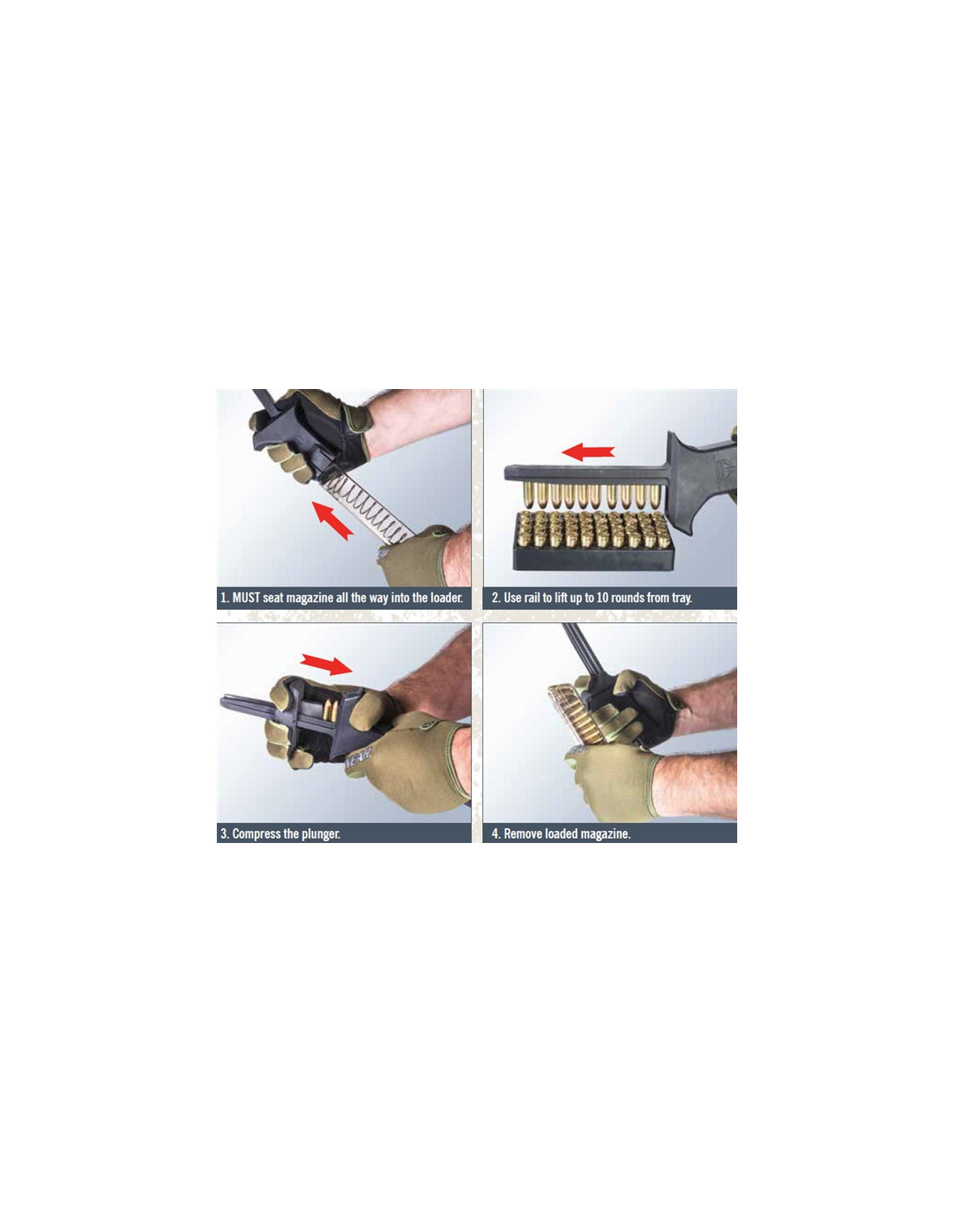 Tai praktiškas ir patikimas sprendimas greitam 9 mm ir .40 S&W pistoletų dėtuvų užtaisymui.